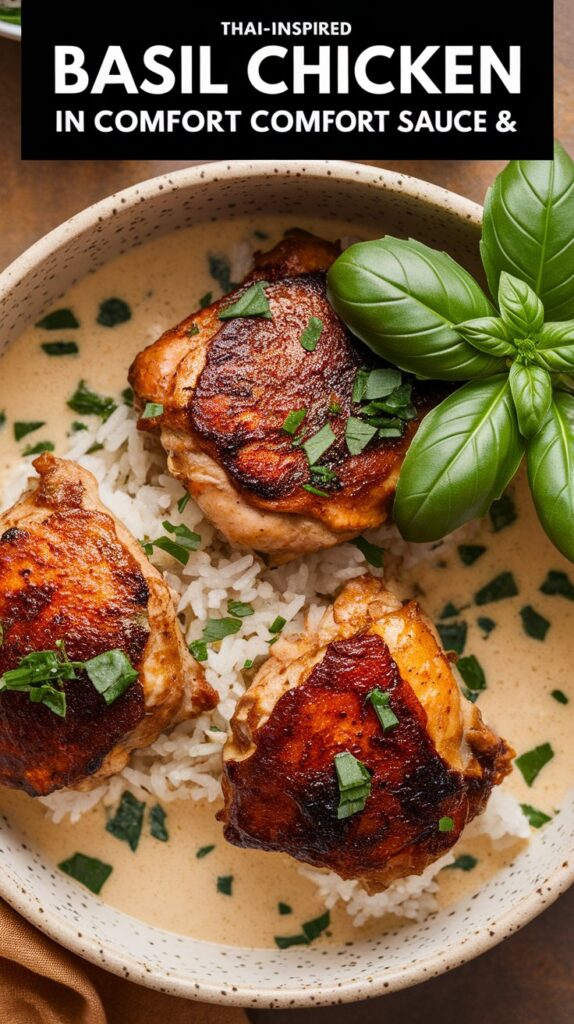 Basil Chicken in Coconut Curry Sauce is a perfect blend of comfort and excitement — creamy, spicy, and irresistibly aromatic. It captures the essence of Thai-inspired cooking while staying accessible and quick enough for weeknights.
