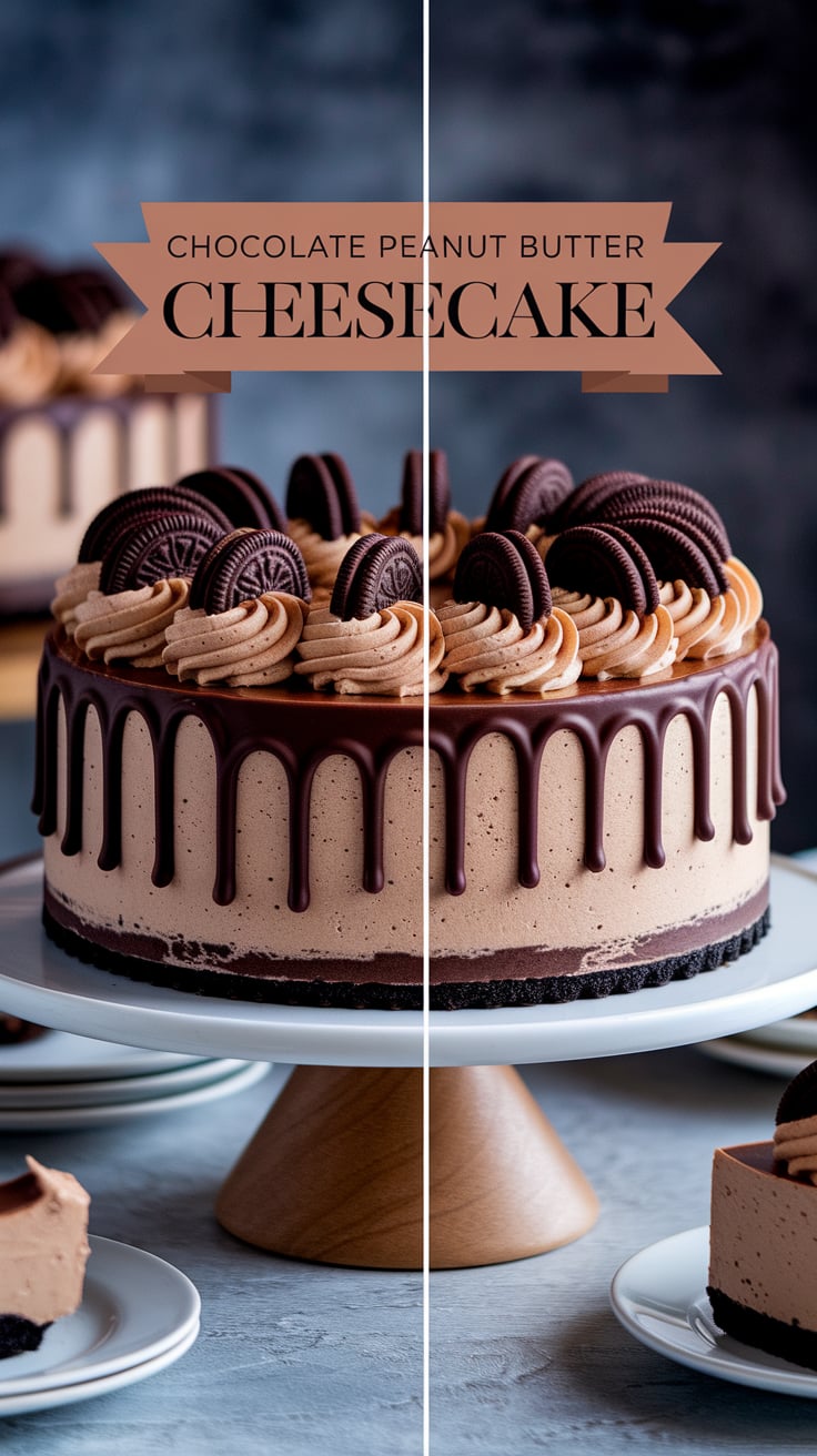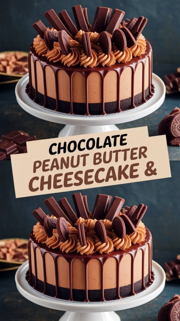 There are desserts that make you smile — and then there’s Chocolate Peanut Butter Cheesecake, a masterpiece that blends two of life’s greatest pleasures into one unforgettable bite. Imagine a buttery graham cracker crust, a smooth and creamy peanut butter cheesecake filling, and a glossy layer of chocolate ganache melting on top.