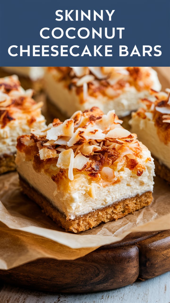 Introducing: Skinny Coconut Cheesecake Bars — a lightened-up dessert that combines creamy cheesecake goodness with the exotic flavor of coconut. These bars are gluten-free, lower in sugar, and rich in protein thanks to Greek yogurt and light cream cheese. Whether you’re living a healthy lifestyle, following a low-calorie diet, or simply want a tropical-inspired dessert that won’t weigh you down — this recipe is for you.