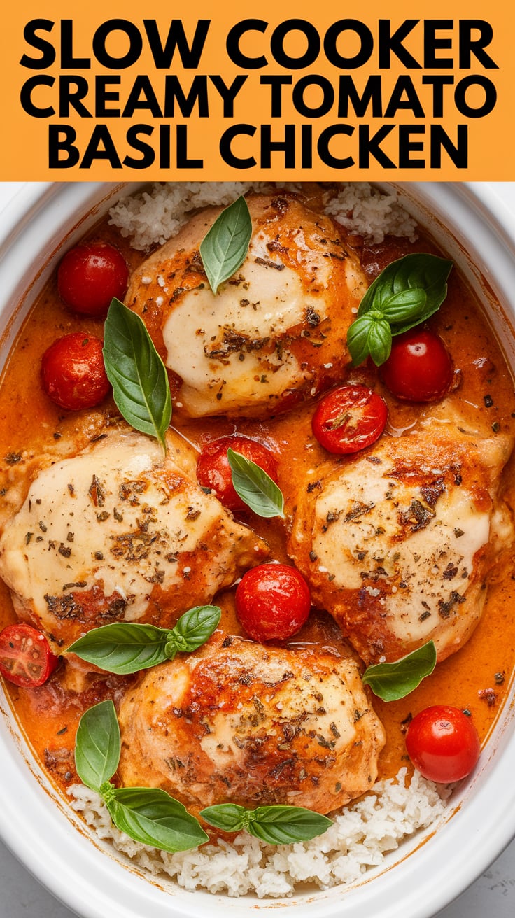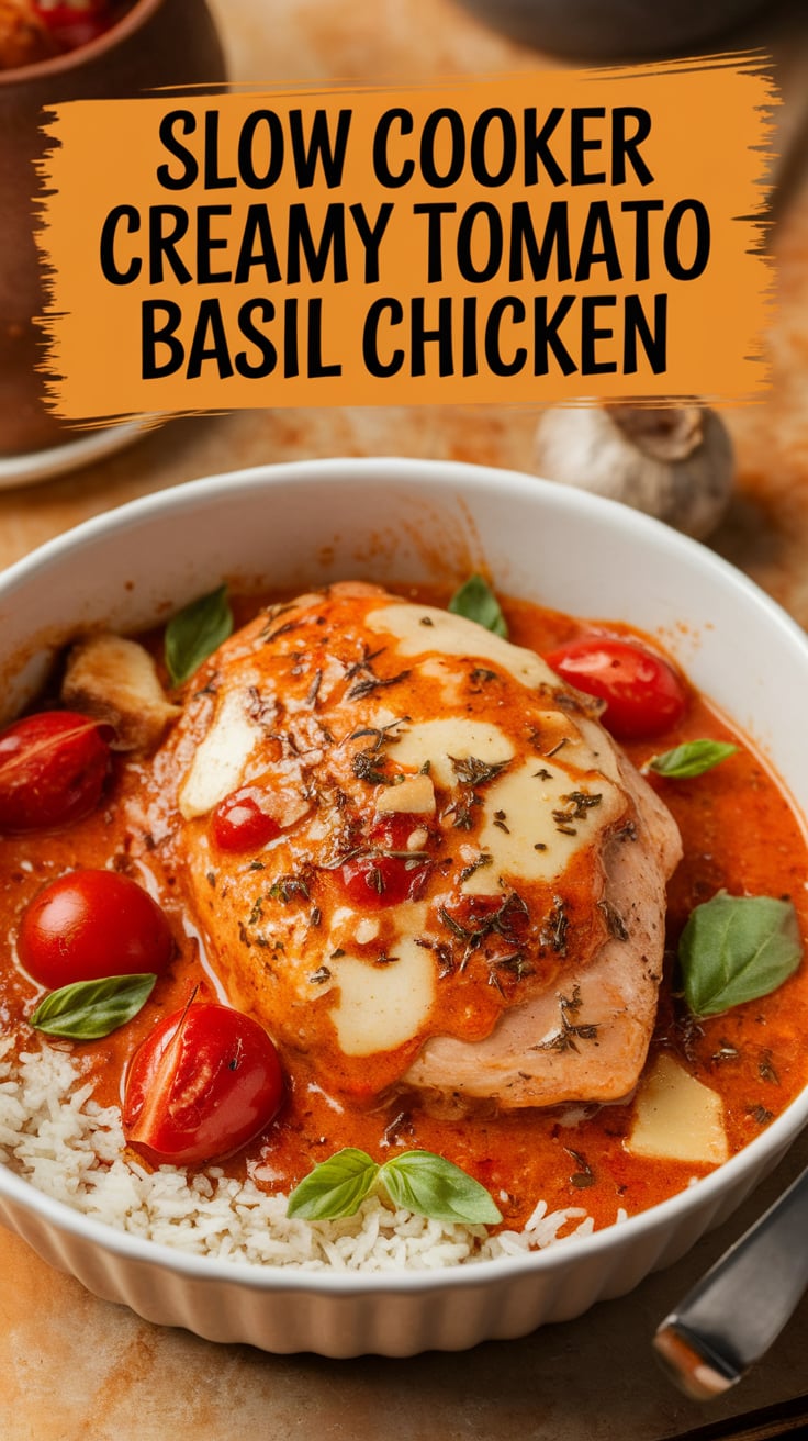 When it comes to comfort food that feels gourmet yet requires minimal effort, few dishes rival Slow Cooker Creamy Tomato Basil Chicken. This recipe is a perfect marriage of simplicity and sophistication: tender chicken breasts simmer slowly in a luscious tomato-cream sauce infused with garlic, herbs, and fresh basil. The result? A family-friendly dinner that tastes like it came from a cozy Italian trattoria, yet is made right in your own kitchen with hardly any hands-on work.