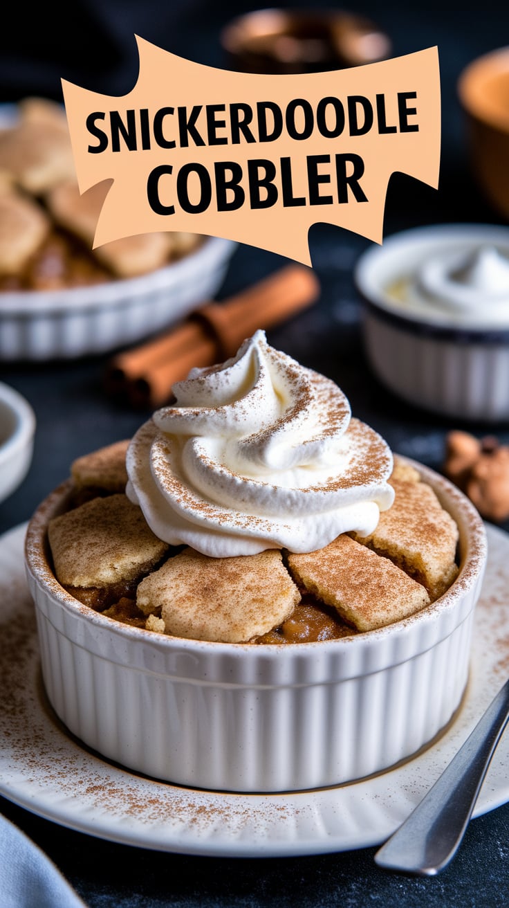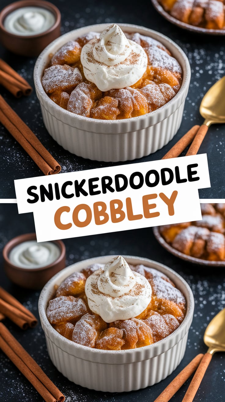 Snickerdoodle Cobbler is a baked dessert inspired by the classic American snickerdoodle cookie. While snickerdoodle cookies are known for their soft centers, crackled tops, and cinnamon-sugar coating, this cobbler captures those same flavors in a completely different form.