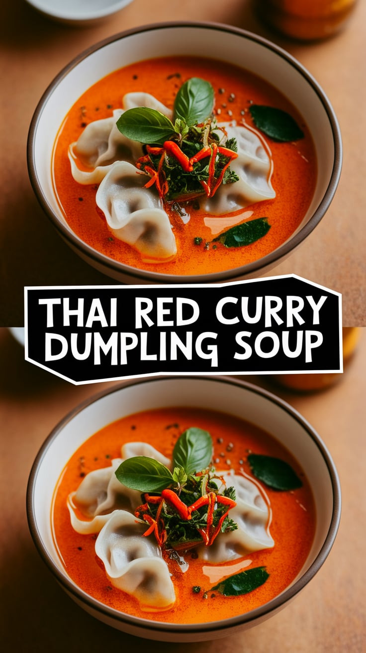Serve hot and enjoy your beautiful Thai Red Curry Dumpling Soup masterpiece!