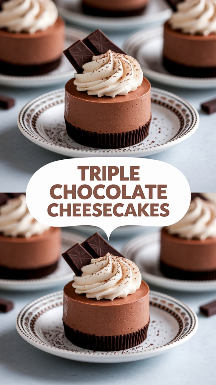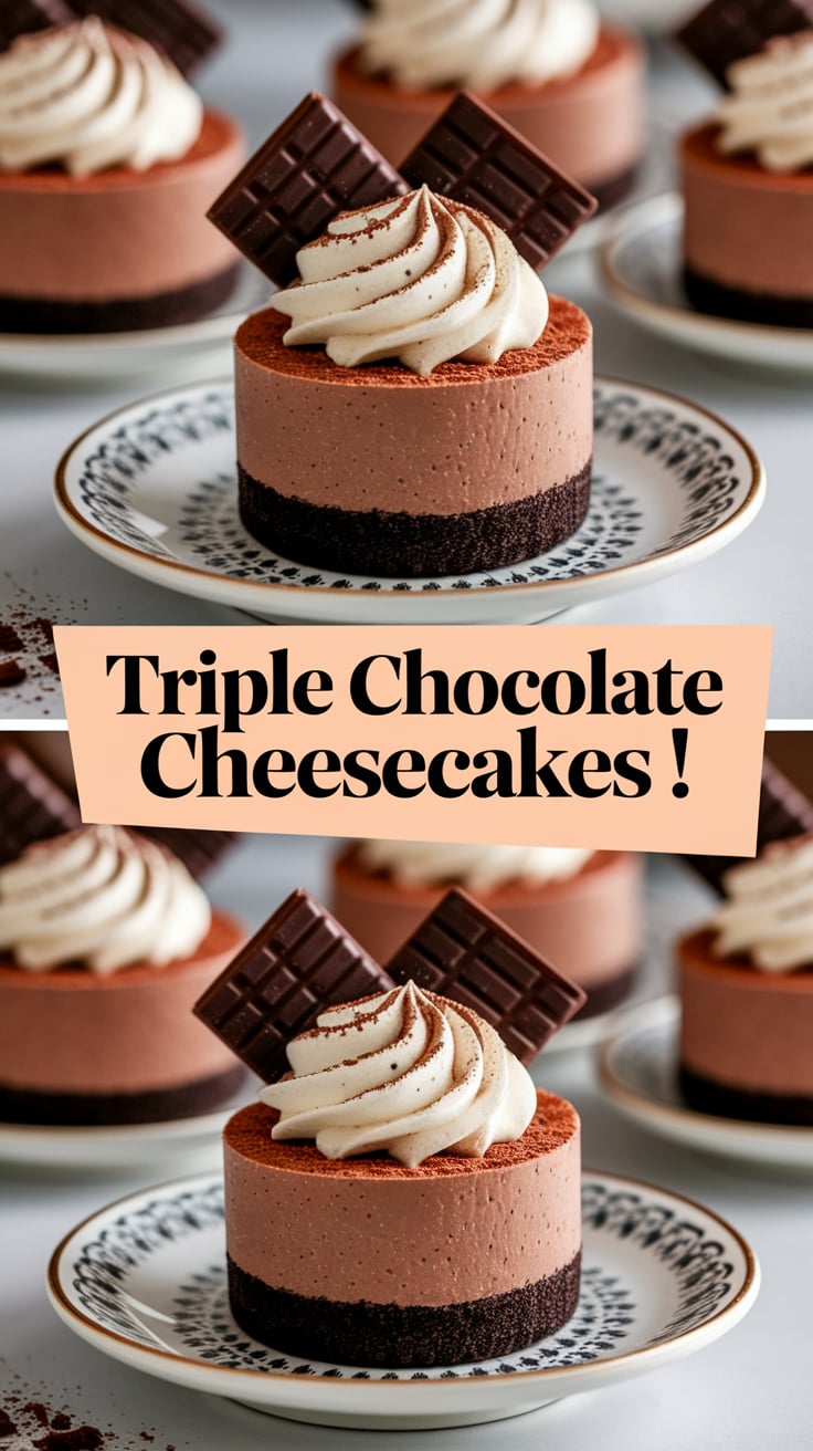 These No-Bake Triple Chocolate Cheesecakes are proof that you don’t need complicated techniques to create a stunning dessert. With their smooth texture, rich chocolate layers, and elegant presentation, they’re guaranteed to become a favorite in your recipe collection.